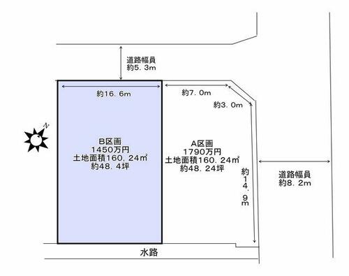 | 接道状況 | 北西 5.3m 公道 接面16.6m北東 8.2m | ||||