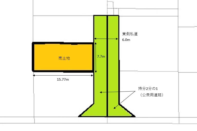 建ぺい率・容積率 | 60%・200% | 私道負担・道路 | 無、東6m幅(接道幅7.7m) | ||