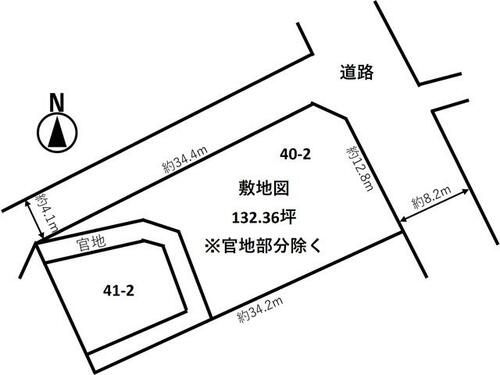 | 接道状況 | 東 8.2m 公道 接面12.8m北 4.1m 公道 接面34.4m | ||||