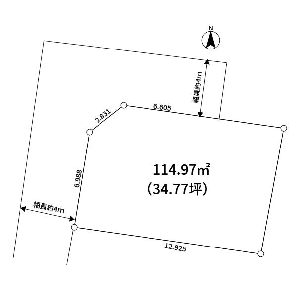 | 建ぺい率・容積率 | 50%・100% | 私道負担・道路 | 無、西4m幅、北4m幅 | ||