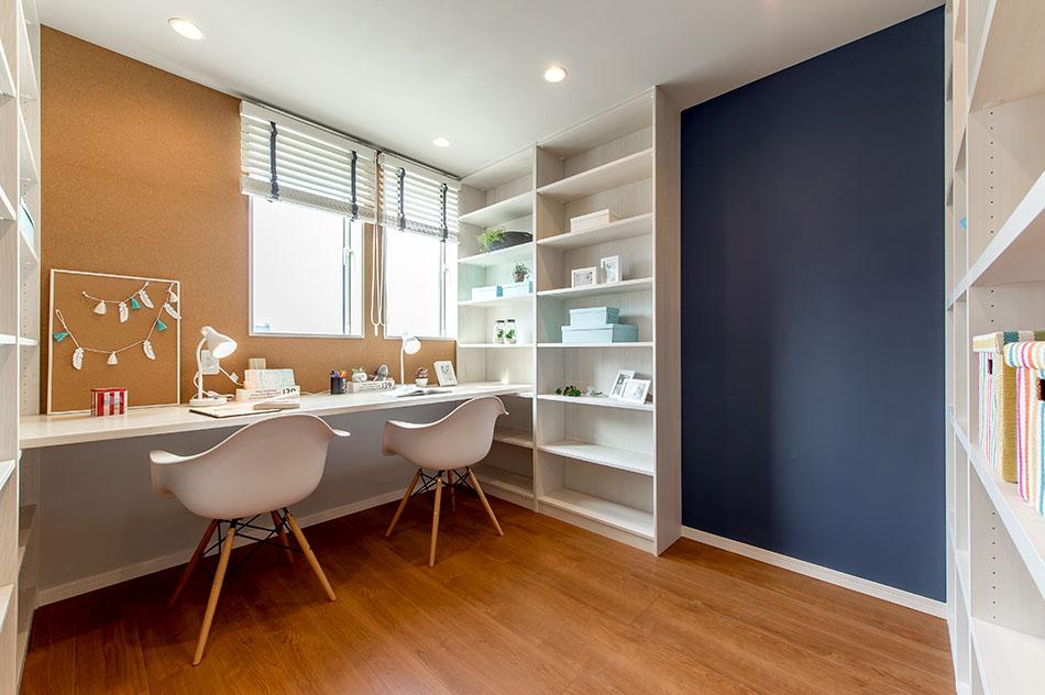【書斎】一人の静かな時間を確保し趣味や読書に没頭できる暮らしを楽しむ贅沢な空間。時代のニーズに合わせてテレワークスペースとしても需要が高まっている仕様です。 /弊社施工例