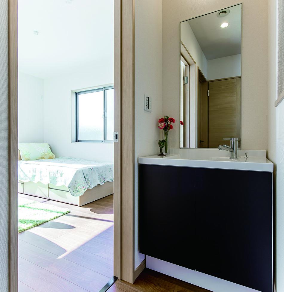 【セカンド洗面台】1階と2階それぞれに洗面スペースを設けているので、2階でも水掃除がしやすくなり、家族の時間が重なる朝は洗面台の混雑を分散させることもできます。/弊社施工例