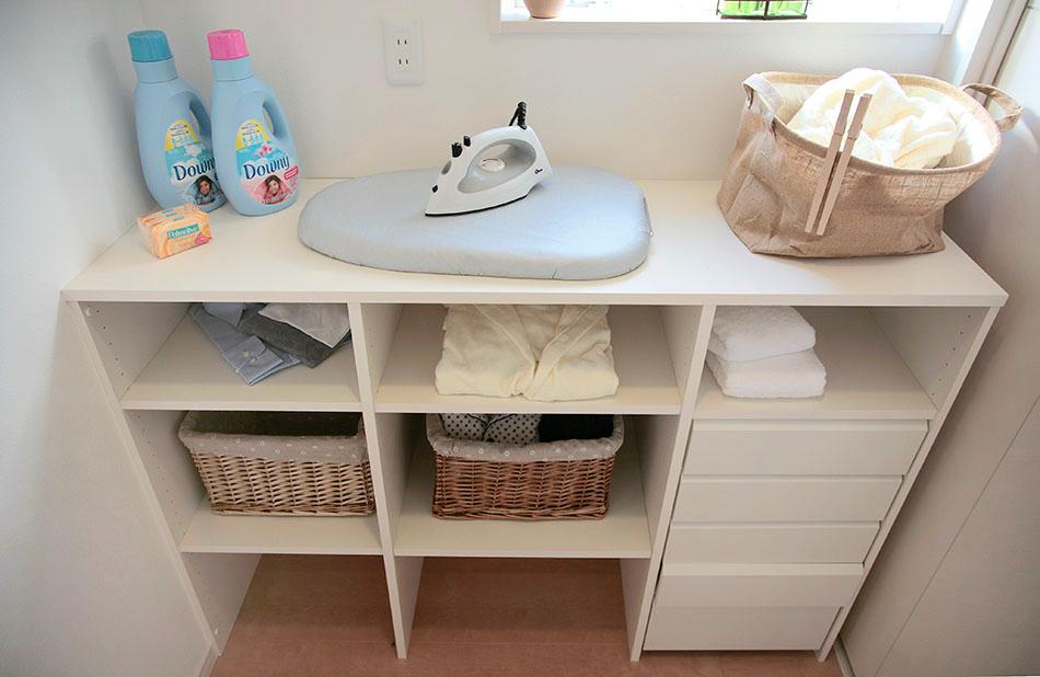 【リネン庫】洗面室にあるリネン庫は、タオルや洗濯洗剤、掃除用具などもしまえて便利です。洗面室を広々すっきり使えます。/弊社施工例