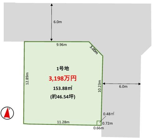 | 建ぺい率・容積率 | 60%・150% | 私道負担・道路 | 無、東6m幅、北6m幅 | ||