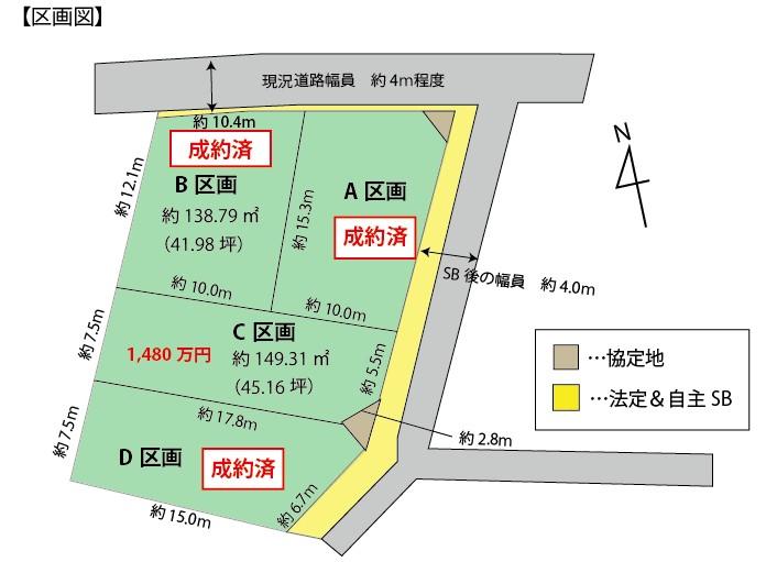 | その他制限事項 | 建築基準法第22条区域、宅造法A区域、A区画契約済、B、C区画販売中、D区画は建売建築販売中 | ||||