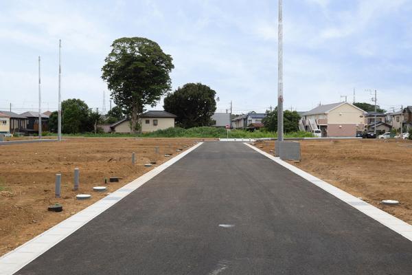 No.19.20.29.30.31前面道路(撮影_2024年8月)南道路。幅が6mあり、車庫入れもしやすくなっています。※No.19と20の北道路となります。