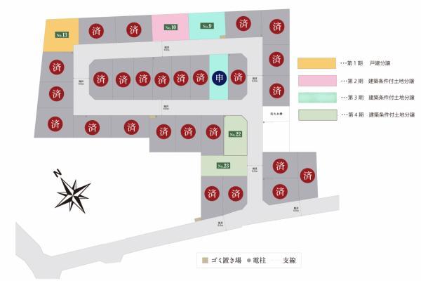 設備:■総区画数:32区画(優先分譲にて2区画販売済み) ガス:都市ガス 水道:公営水道 汚水:公共下水、開発面積:5735.08㎡、■掲載の図面は計画段階の図面を基に描き起こしたもので、実際とは異なる場合があります。 また、施工上やむをえない変更が生じた場合は、建物竣工時の状態を優先します。 ■まちなみ画像・CGには販売済区画を含む場合がございます。最新の販売状況は区画図等をご参照下さい。 ■家具・調度品等は販売価格に含まれません。 ■お引渡時期については、諸手続き完了後となります。ただし造成・建築中の物件については、完工後のお引渡となります。 ■建築条件付土地分譲のご案内 この土地は土地売買契約締結後3ヵ月以内に東京セキスイハイム株式会社と住宅の建築工事請負契約を締結していただくことを条件として販売いたします。 この期間中に建築工事請負契約が成立しなかった場合は、土地売買契約は白紙となり受領した金銭は全額無利息にてお返しいたします。 ■水道負担金:297000円(税込)/口径20mm ■ゴミ置き場(459-47)2.51m2 持分1/12 No5~14、26、27 ゴミ置き場(459-48)2.51m2 持分1/12 No15~20、28~33 ゴミ置き場(459-10)2.71m2 持分1/10 No1~4、21~25 です。ゴミ置き場(459-10)には分譲地外から1軒含んでいます。