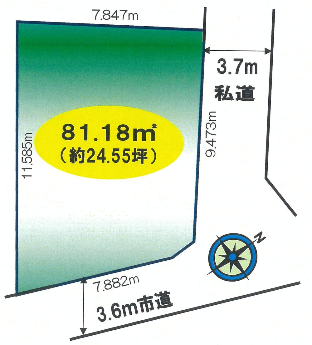 | 建ぺい率・容積率 | 60%・200% | 私道負担・道路 | 無、北東3.7m幅(接道幅9.4m)、南東3.6m幅(接道幅7.8m) | ||