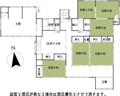 | 備考 | ◆上物付売地◆建物の契約不適合責任免責、現況有形有姿の引渡し◆単独浄化槽◆宅内処理◆建物登記あり◆確認申請・完了済証あり◆設計図書なし◆フルリフォーム必須◆洪水ハザードマップにて0.5m未満の区域に指定◆アスベスト調査、耐震調査、地盤調査は、未実施◆設備はすべて作動確認しておりません。水道配管、浄化槽などは交換が必要だと思います。・セットバック:有・私道負担:なし・◆建物登記あり◆確認申請・完了済証あり◆建物の契約不適合免責、現況有形有姿の引渡し◆フルリフォーム必須◆ハザードマップにて0.5m未満の区域に指定◆アスベスト調査、耐震調査、地盤調査は、未実施です。 / 条件等:現況渡し | ||||