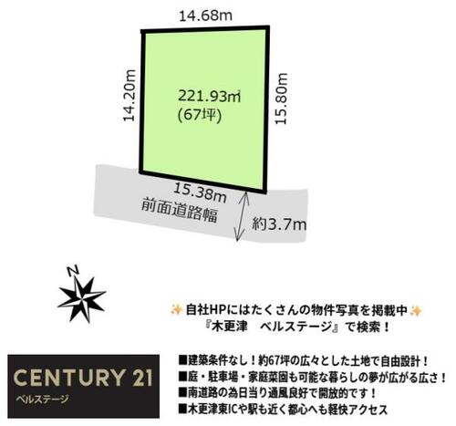 | 備考 | ■建築条件なし!約67坪の広々とした土地で自由設計!■庭・駐車場・家庭菜園も可能な暮らしの夢が広がる広さ!■南道路の為日当り通風良好で開放的です!■木更津東ICや駅も近く都心へも軽快アクセス!●現況有姿●境界非明示●契約不適合免責●公営水道※図面と相違がある場合は現況を優先とさせていただきます、景観法・私道負担:なし・緑に囲まれた静かな環境の木更津市真里!敷地67坪で南道路で陽だまりに包まれる住まいを叶えられます!駅まで徒歩10分!木更津東ICまで車で5分で都心へアクセス良好! / 条件等:現況渡し | ||||