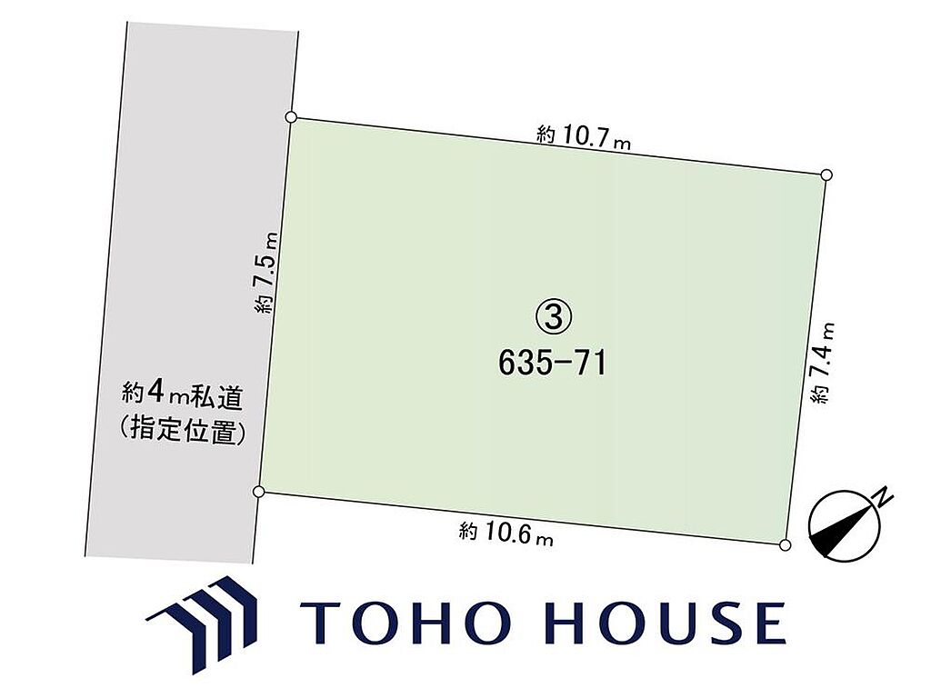 セットバック | 無 | 接道状況 | 一方 ( 南西 4m 私道 間口7.5m ) | ||