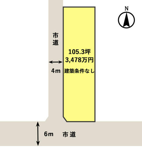 | 備考 | 契約後、売主にて更地にし地目変更後、引き渡します。・整形地105.3坪 間口38m超 更地渡しです! / 条件等:更地渡し | ||||