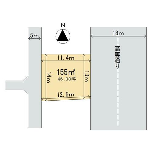 接道状況 | 東 18.0m 公道 接面13.0m西 5.0m 公道 接面14.0m | ||||
