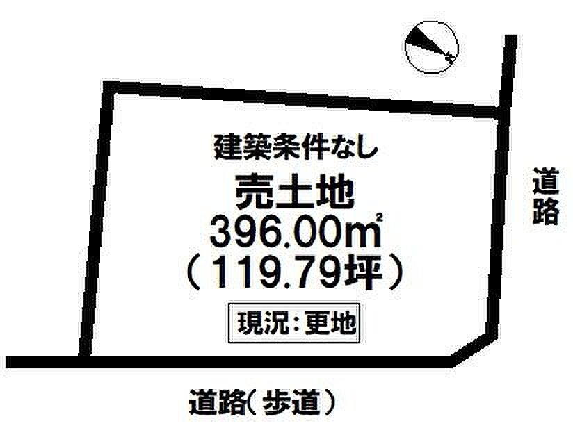 セットバック | 無 | 接道状況 | 角地 ( 北西 5.3m 公道 間口12.8m ) ( 北東 18.1m 公道 間口23.2m ) | ||