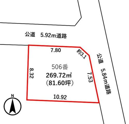 | 接道状況 | 北 5.9m 公道 接面18.4m東 5.8m 公道 | ||||
