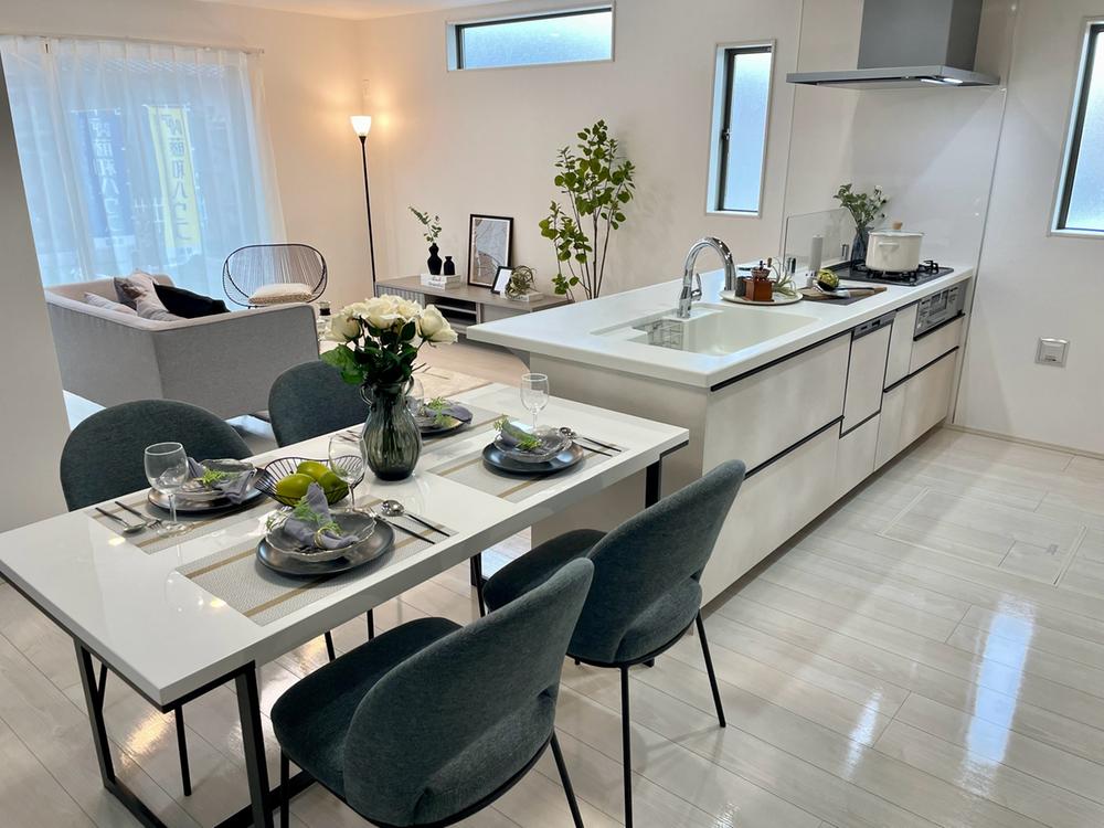 お食事の準備中でもお子様に目が届き、会話を楽しめる家族思いの対面式キッチンです。建物プラン例:建物価格1700万円、建物面積101.84㎡※本分譲地に建築可能なプラン※坪50万円で増坪可能です