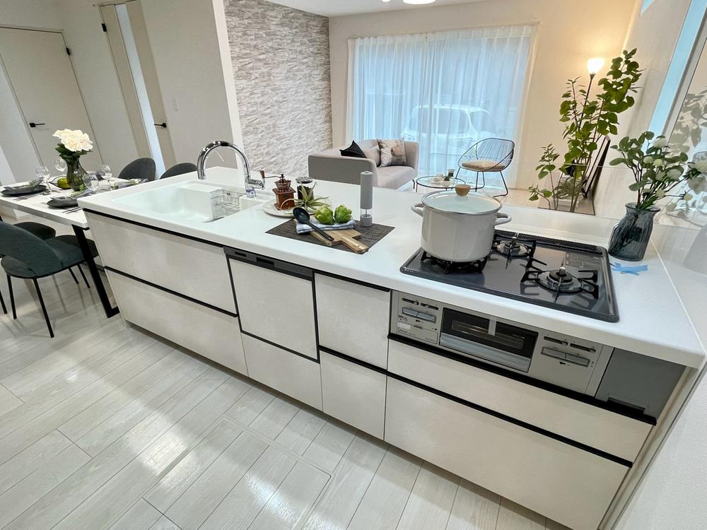 お食事の準備中でもお子様に目が届き、会話を楽しめる家族思いの対面式キッチンです。建物プラン例:建物価格1700万円、建物面積101.84㎡※本分譲地に建築可能なプラン※坪50万円で増坪可能です