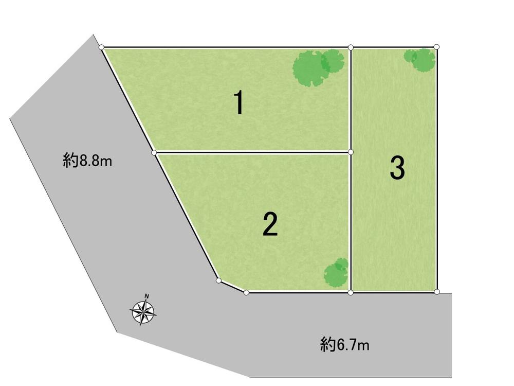 建ぺい率・容積率 | 建ペい率:50%、容積率:80% | 私道負担・道路 | 道路幅:6.7m~8.8m、アスファルト舗装 | ||