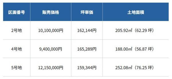 | 最多価格帯 | 900万円台・1200万円台・1000万円台(各1区画) | 販売区画数/総区画数 | 3区画/6区画 | ||
