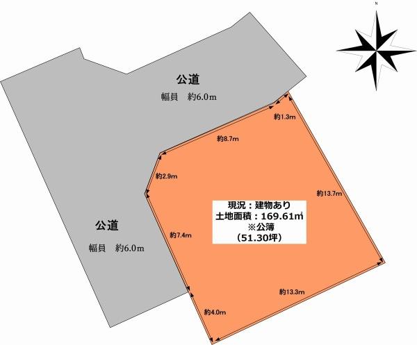 | 建ぺい率・容積率 | 60%・150% | 私道負担・道路 | 無、南西6m幅(接道幅11.2m)、北西6m幅(接道幅9.6m) | ||