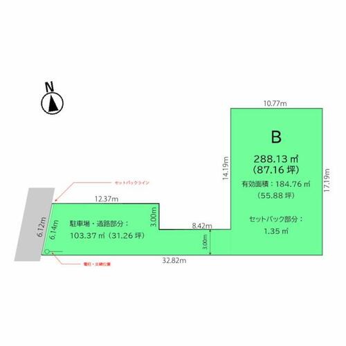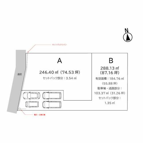 備考 | 【B号地】◆法令上の制限等:22条区域、景観法、航空法、都市再生特別措置法、盛土等規制法、文化財保護法◆造成工事・上水道宅内引込工事完了後の引渡し◆下水道引込工事要◆有効面積:184.80㎡(55.90坪)◆駐車場・通路部分:103.37㎡(31.26坪)◆南西角にNTTの電柱および支線あり◆セットバック部分は道路として寄付予定です。セットバック部分の面積は土地面積に含まれておりません。・セットバック:済・【蘇原野口町B号地】蘇原第一小学校まで徒歩5分!徒歩圏内にお店が揃う暮らしやすいエリアです!!病院や銀行も近いので、子育て世代はもちろん、住み替えをお考えの方にもおすすめです◎ / 条件等:現況渡し |