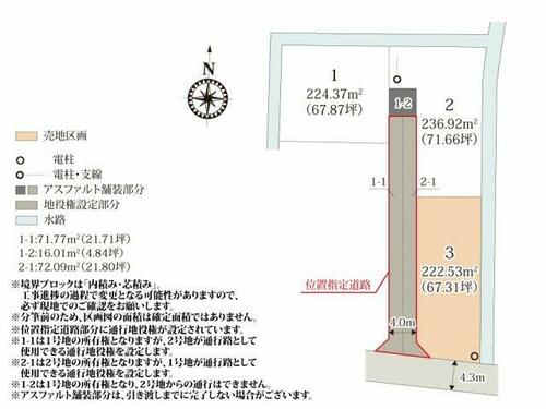 | 接道状況 | 南 4.3m 公道西 4.0m 私道 位置指定有 | ||||