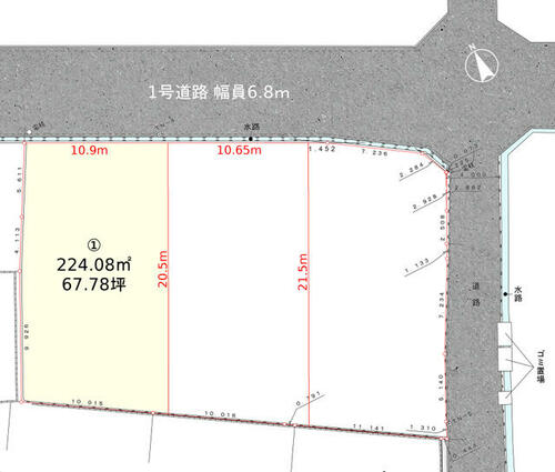 | 接道状況 | 北 6.8m 公道 接面10.9m | ||||