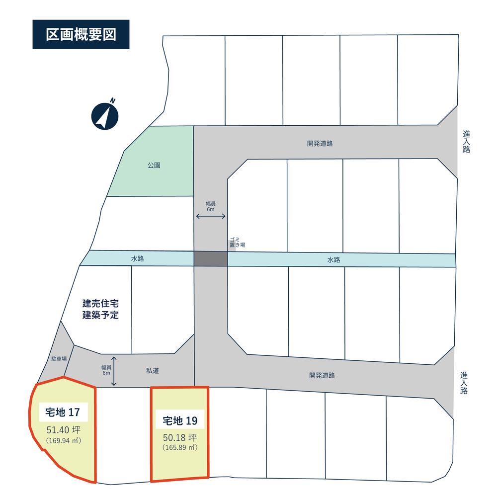 | 建ぺい率・容積率 | 建ペい率:60%、容積率:200% | 私道負担・道路 | 道路幅:6m、アスファルト舗装、17、19の前面道路は売主の所有、売主より通行許可書を発行します | ||