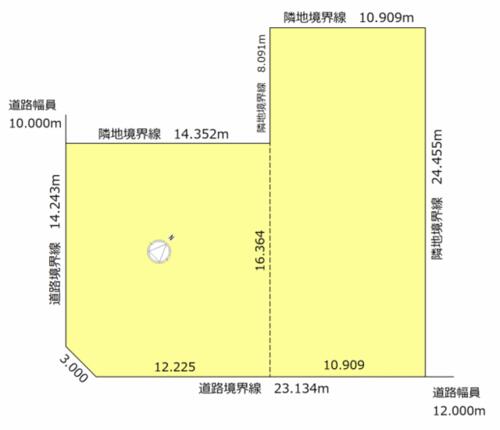 | 接道状況 | 南東 12.0m 公道 接面23.1m南西 10.0m 公道 接面14.2m | ||||