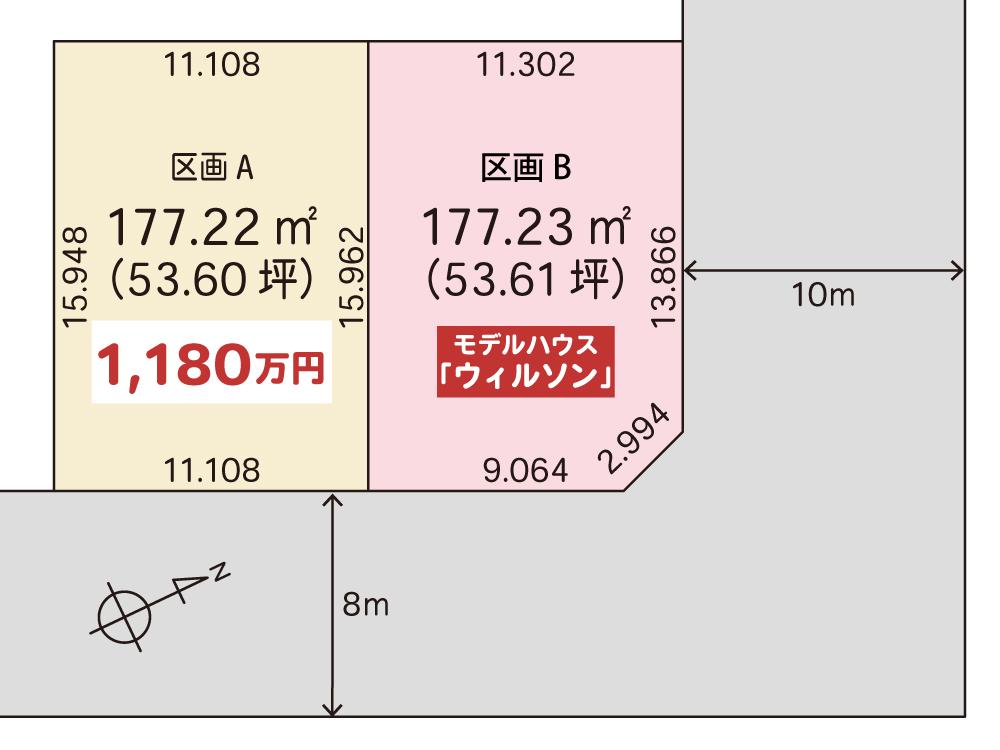 建ぺい率・容積率 | 建ペい率:40%、容積率:60% | 私道負担・道路 | 道路幅:8m、アスファルト舗装 | ||