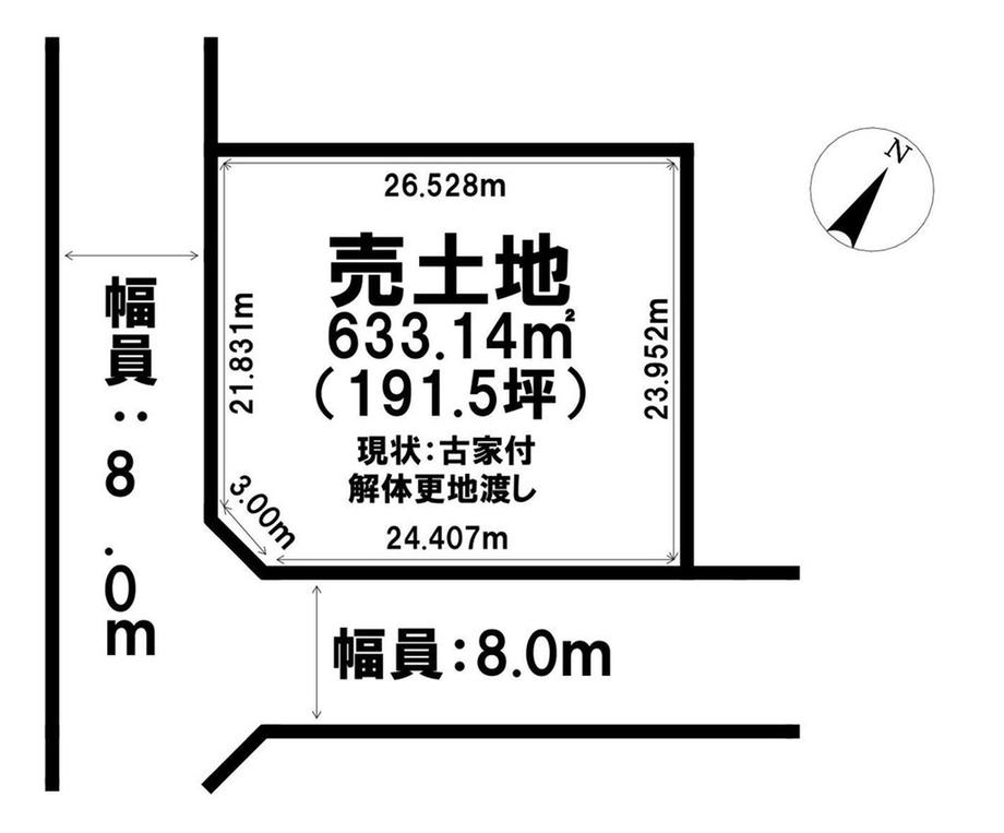 | 建ぺい率・容積率 | 60%・200% | 私道負担・道路 | 無、南西8m幅(接道幅21.8m)、南東8m幅(接道幅24.4m) | ||