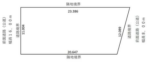 | 接道状況 | 北西 16.0m 公道 接面11.0m南東 8.0m 公道 接面12.0m | ||||