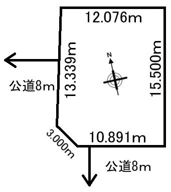 | 建ぺい率・容積率 | 50%・80% | 私道負担・道路 | 無、南8m幅(接道幅10.8m)、西8m幅(接道幅13.3m) | ||