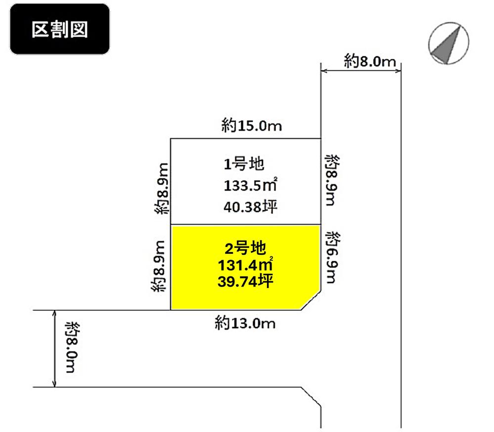 | 建ぺい率・容積率 | 50%・80% | 私道負担・道路 | 無、南東8m幅(接道幅6.9m)、北東8m幅(接道幅13m) | ||