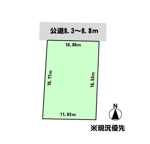 | 接道状況 | 北 8.3m 公道 接面10.8m | ||||