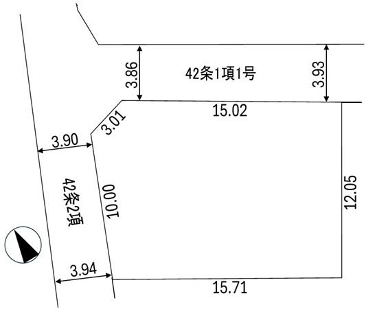 | 建ぺい率・容積率 | 60%・100% | 私道負担・道路 | 共有持分987㎡×(397/9114)、北3.8m幅(接道幅15m)、西3.9m幅(接道幅10m) | ||