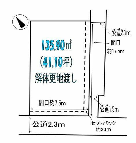 | 接道状況 | 南 2.3m 公道 接面7.5m東 2.0m 公道 接面17.5m | ||||