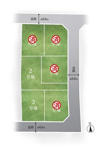 道路幅:6m、アスファルト舗装、私道負担なし