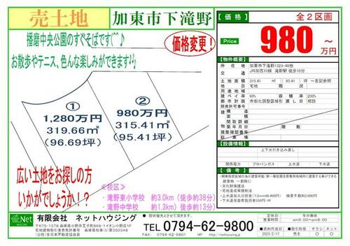 JR加古川線 「滝野」駅 徒歩23分 | ||||