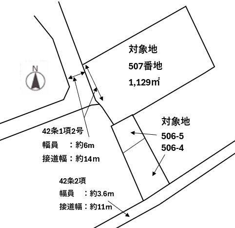 | 建ぺい率・容積率 | 60%・200% | 私道負担・道路 | 無、西14m幅、南3.6m幅 | ||