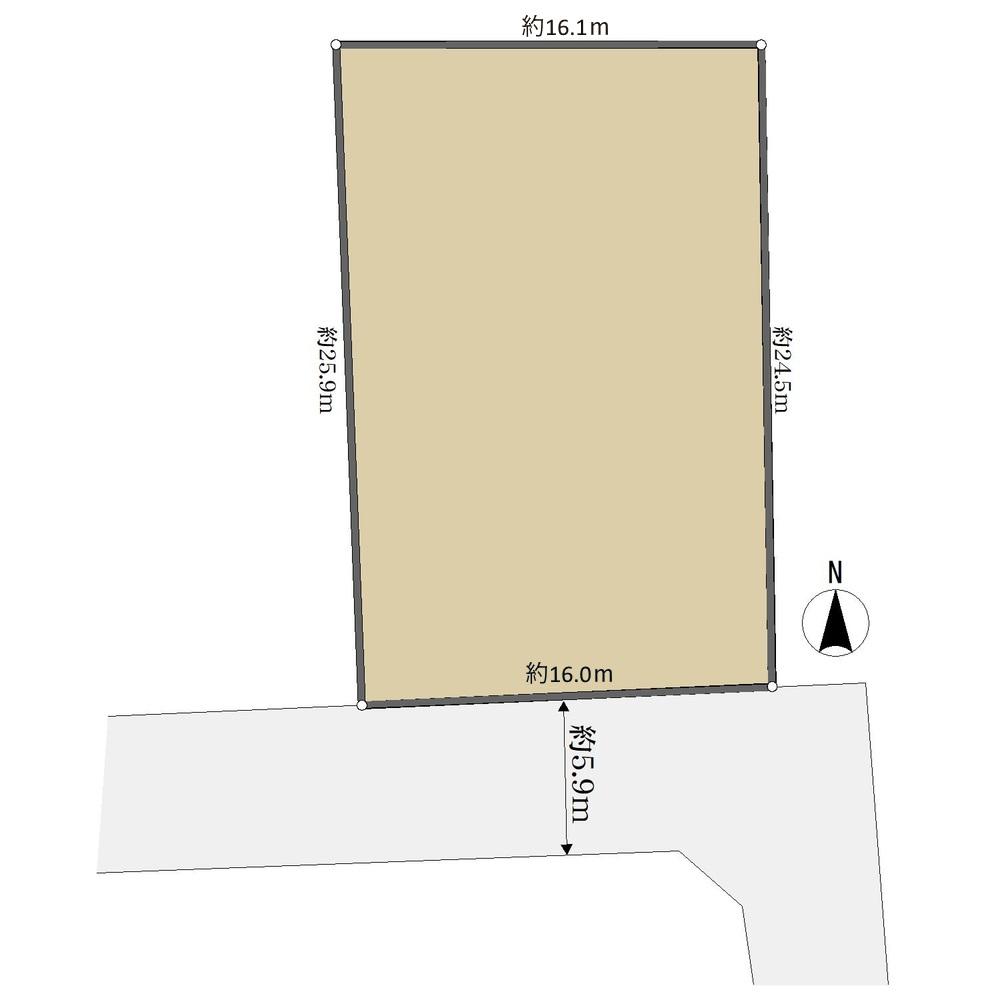 土地価格3950万円、土地面積400.01㎡ 陽当り良好な南側接道!幅員約5.9mの公道に間口約16.0mで面しています。121.0坪のゆとりある敷地で、玄関の位置からプランニング可能です。
