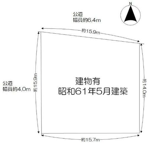 接道状況 | 北 6.4m 公道 接面15.9m西 4.0m 公道 接面15.9m | ||||