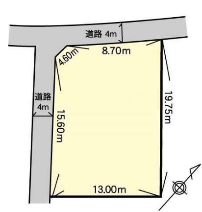 | 接道状況 | 北西 3.8m 公道 接面8.7m南西 4.0m 私道 接面15.6m 位置指定有 | ||||