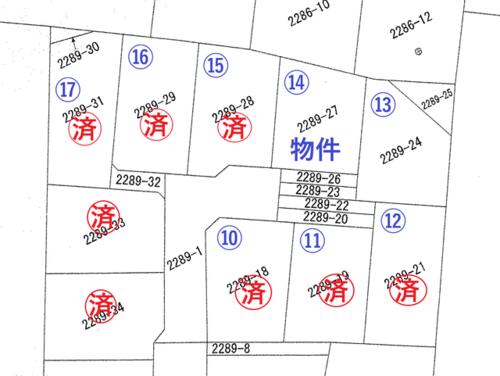 | 備考 | ・水道加入金114,400円別途要・他区画有⑬228.57㎡(69.14坪)750万円・区画⑬の有効宅地は地番2289-24のみとなります。・区画⑪⑫⑬⑭は通路部分協定書有、4区画建物完成後売主に於いて舗装・ゴミ置場持分有・私道負担:あり25.34平米・小吹町の第二期分譲です!バス停やツインズ笠原も近く、生活利便地なうえ、自然豊かな場所ですので住みよい環境です。 / 条件等:現況渡し | ||||