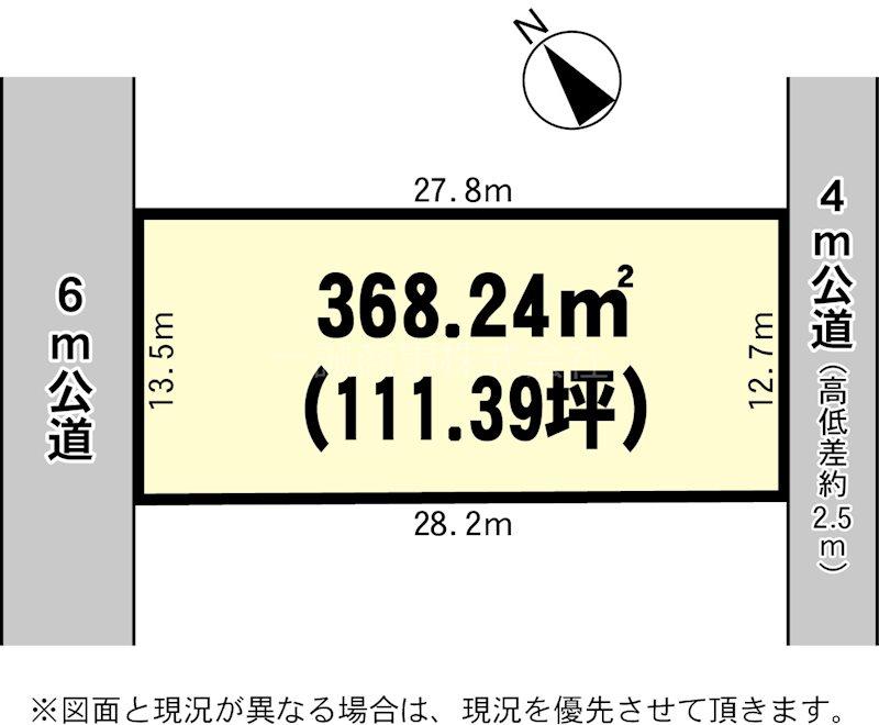 | 建ぺい率・容積率 | 50%・100% | 私道負担・道路 | 無、北西6m幅(接道幅13.5m)、北東4m幅(接道幅12.7m) | ||
