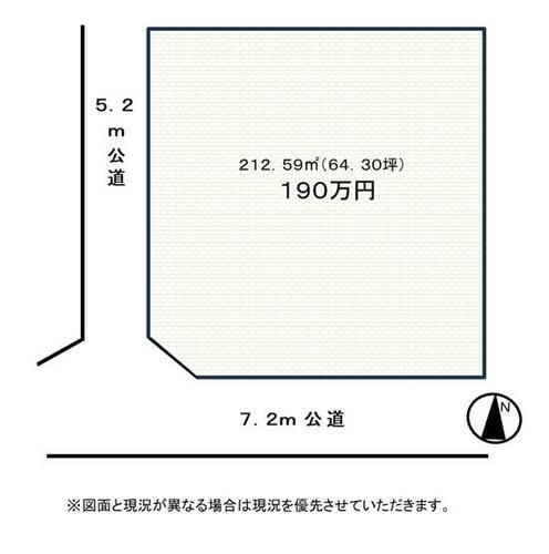 | 接道状況 | 南 7.2m 公道西 5.2m 公道 | ||||