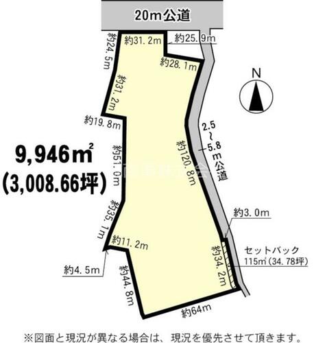 備考 | セットバック:有115平米・私道負担:なし・接面:東155.1m / 条件等:現況渡し |