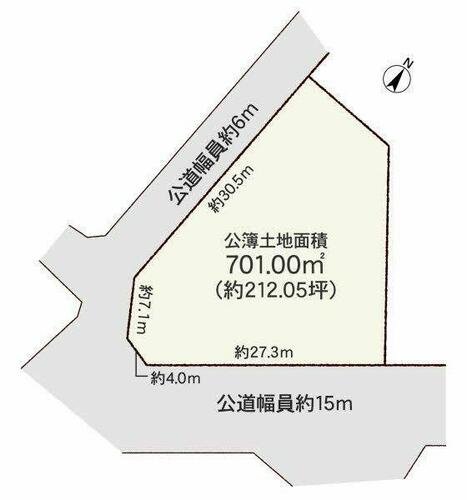 | 接道状況 | 西 6.0m 公道 接面37.6m南東 15.0m 公道 接面27.3m | ||||