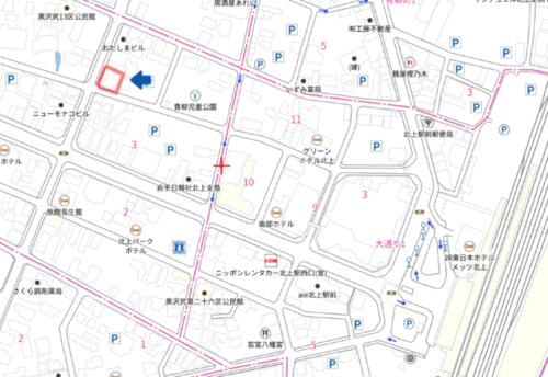| 備考 | 土地上にビルが存在していますが現状渡しとなります。ベルは現在、全階空室です。(現状渡し)アスベスト調査未調査。・北上市内中心部 角地! 104坪!事業用地にどうそ。 / 条件等:現況渡し | ||||