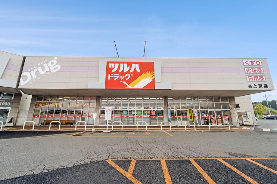 ツルハドラッグ 北上東店まで550m 医薬品、化粧品、健康食品はもちろんのこと、日用品や食品まで幅広い商品を取り扱うドラッグストアです。駐車場も完備されており、日々の買い物に便利です。営業時間は9:00~23:00。